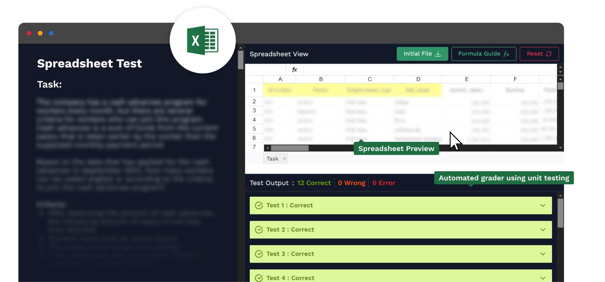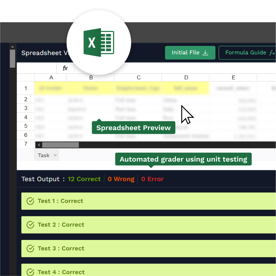 • The test may be conducted under conditions where candidates are not allowed to use external resources or reference materials. This helps ensure a fair assessment of candidates’ actual spreadsheet skills and abilities.