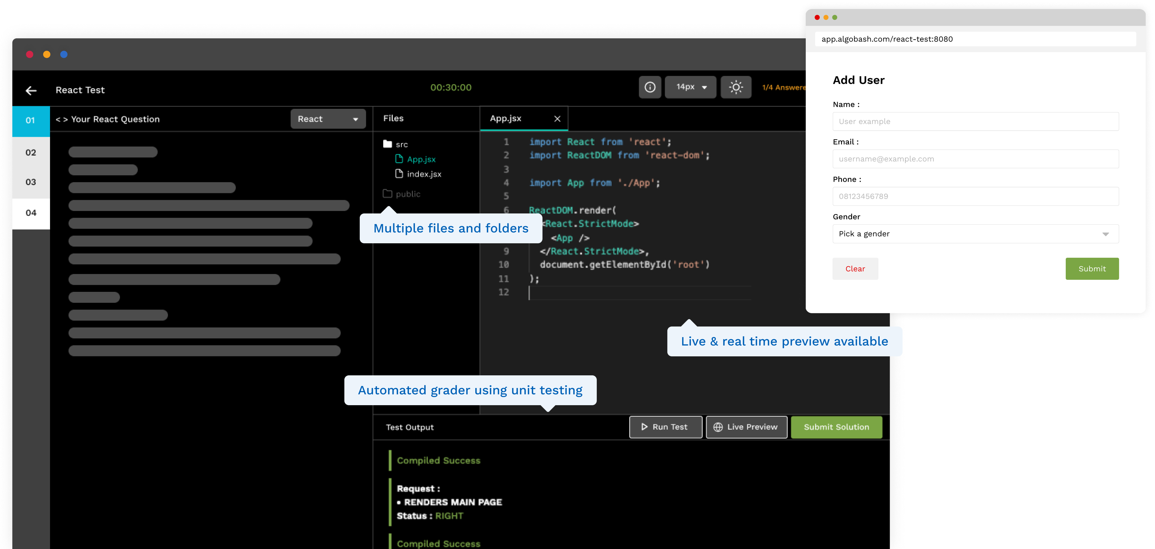 - Tersedia pratinjau langsung. Lebih mudah bagi peserta untuk mengerjakan kode mereka.